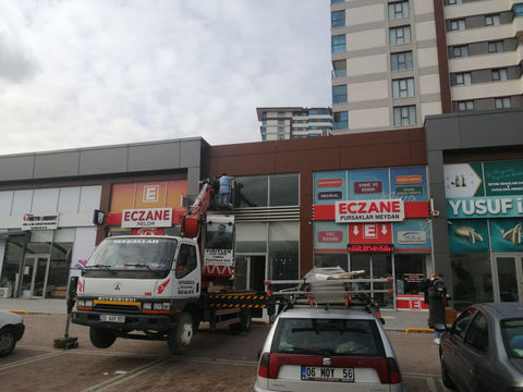 Tabela montajı, bina kaplama ve reklam uygulamaları için sepetli vinç hizmeti